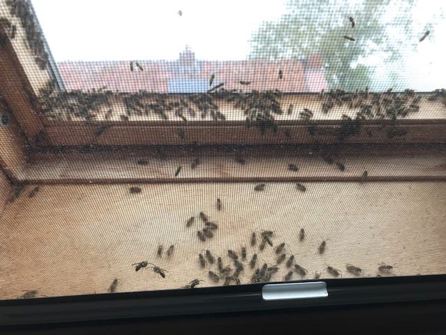 De wesp heeft namelijk allemaal kleine haartjes aan zijn lijf. Hierdoor blijft de poeder, dus het gif, aan de wesp plakken en neemt hij het gif mee door het hele nest heen. Zo komt het gif uiteindelijk terecht bij de koningin. Zonder de koningin kunnen de werksters, die we dus zien vliegen, niet leven en gaan zij ook dood. Op deze manier wordt het nest uitgeroeid.